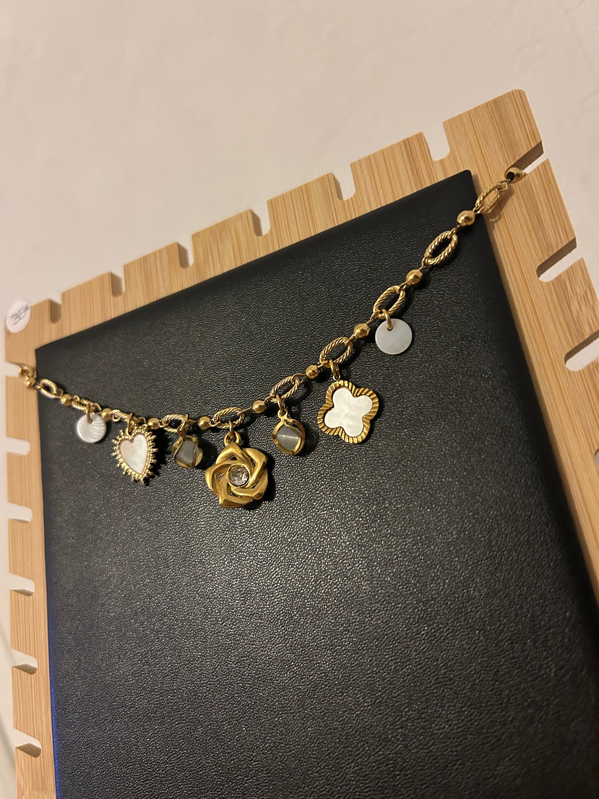 Collier en acier inoxydable, breloques en acier inoxydable et pendentif en nacre